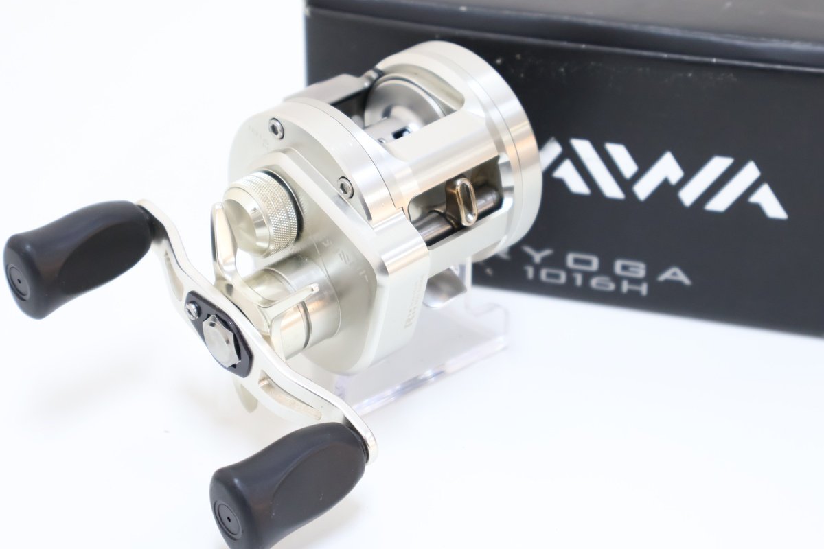リョウガ1016Hはダイワが誇る高剛性丸形ベイトリールで、アルミ削り出しボディの堅牢さが最大の特徴です。ハイギアモデルはバスフィッシングの巻物からカバー撃ちまで対応し、力強い巻き心地で安心感のある釣りが展開できます。